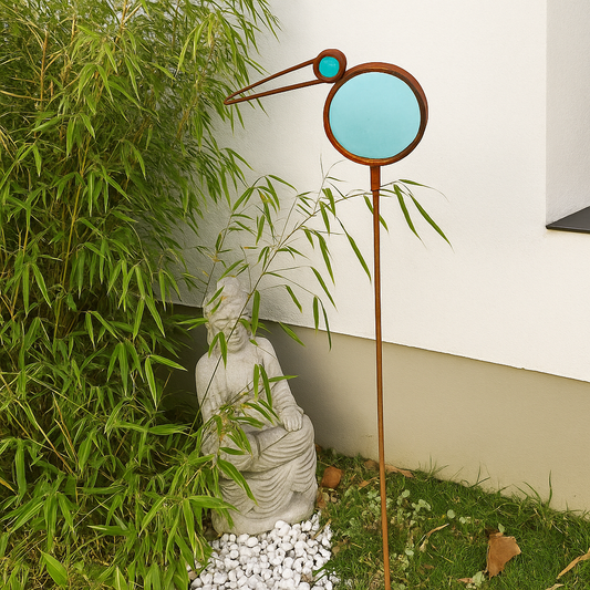 Edelrost Gartenstecker Garten Vogel mit Stein ,Glas