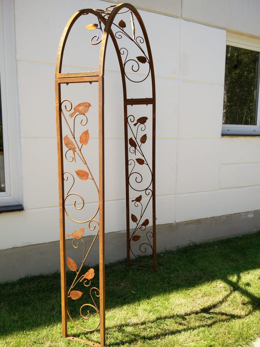 AusverkauftRosenbogen aus Edelrost mit Vogel Motiv