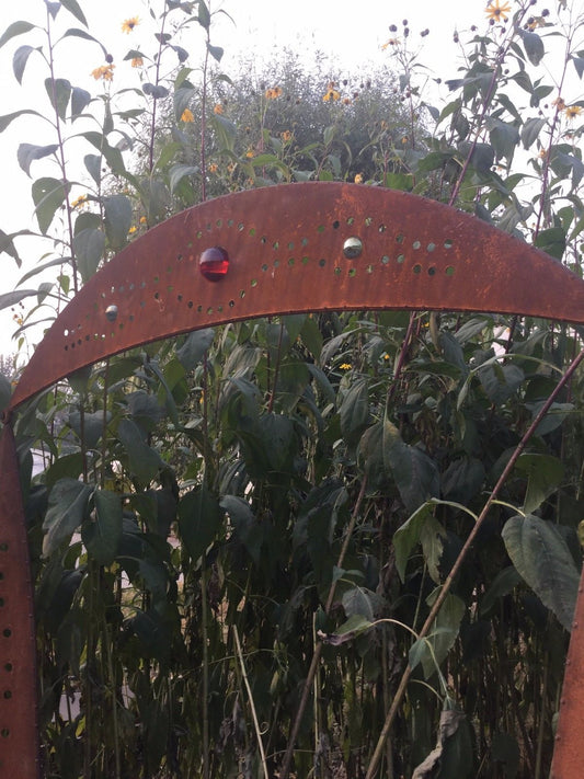 Edelrost Rosenbogen Kletterhilfe Rost Metall Rosenspalier H220cm Handarbeit 031934-1/2