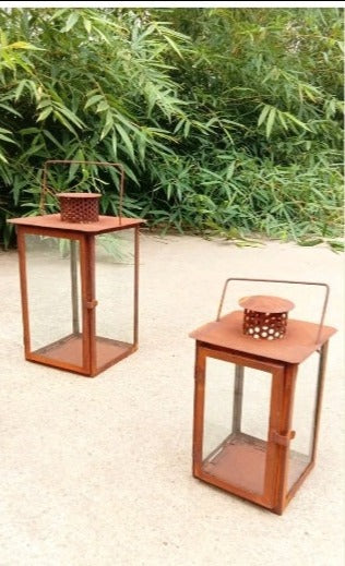 Rust lantern candle holder garden lantern made of metal strong material garden Christmas metal lantern garden lantern