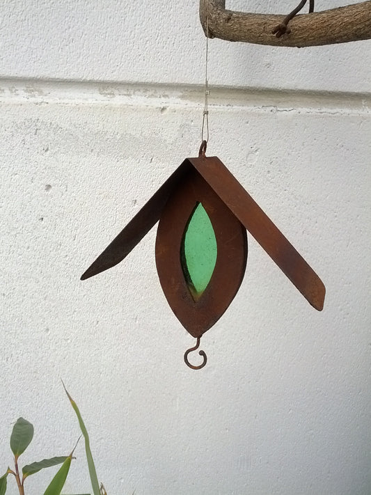 Edelrost Vogelhaus Futterhaus zum Aufhängen aus Metall, mit Glas 032216-1