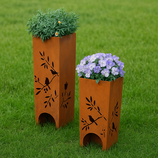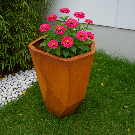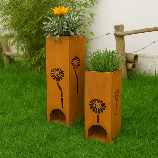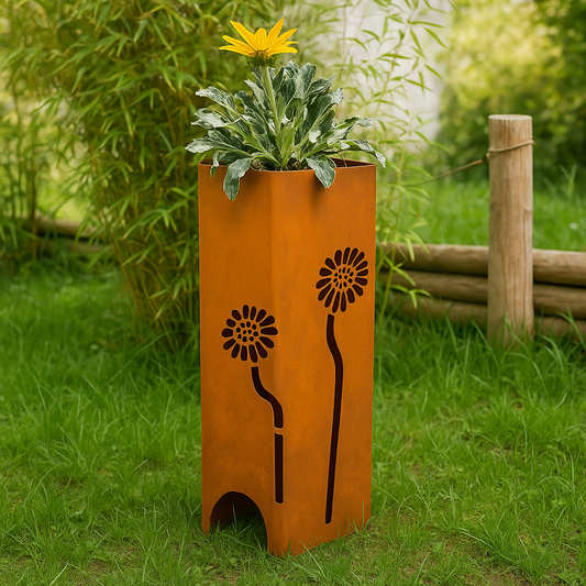 Unsere Töpfe sind aus robustem Cortenstahl gefertigt und zeigen eine natürliche Rostpatina, die dem Produkt eine authentische, verwitterte Ausstrahlung verleiht. Der Rost verleiht dem Produkt nicht nur ein unverwechselbares Aussehen, sondern schützt es auch vor Witterungseinflüssen und sorgt für eine lange Lebensdauer. Ob als Pflanzgefäß, als Skulptur oder als dekoratives Element im Garten, dieses rostige Garten Produkt wird garantiert zum Hingucker und verleiht jedem Garten einen charmanten Vintage-Touch.