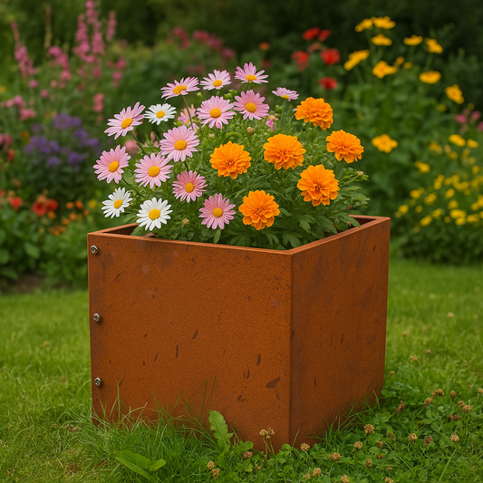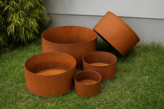 Unsere Töpfe sind aus robustem Cortenstahl gefertigt und zeigen eine natürliche Rostpatina,...