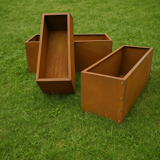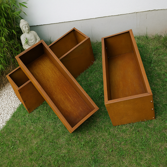 Edelrost Blumentopf Rechteckig aus Metall , 1mm