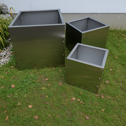 Edelstahl Garten Blumentopf, Viereckig 30-50cm