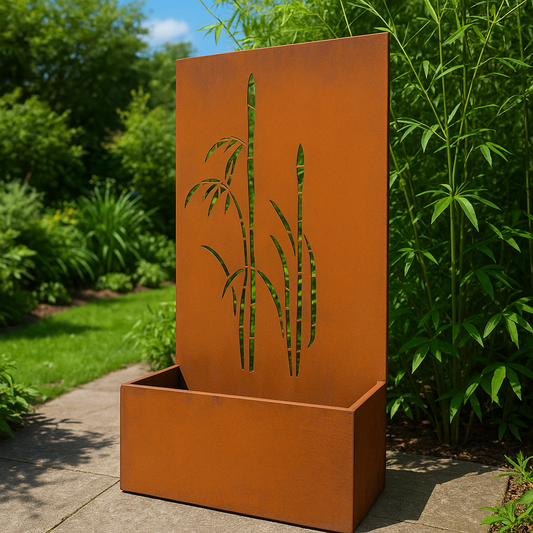 Edelrost Garten Sichtschutzwand mit Pflanzschale Blumentopf
