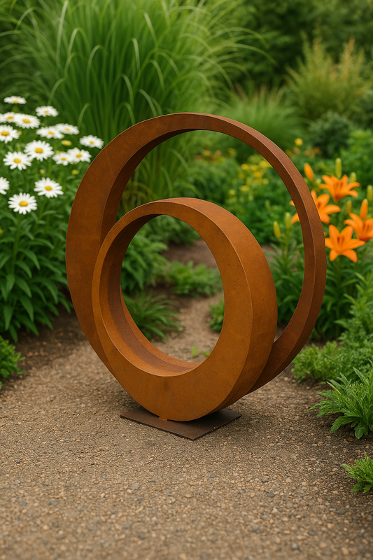 Edelrost Gartenstecker ''Ring ''Gartenskulptur Figure aus Metall 1.5mm