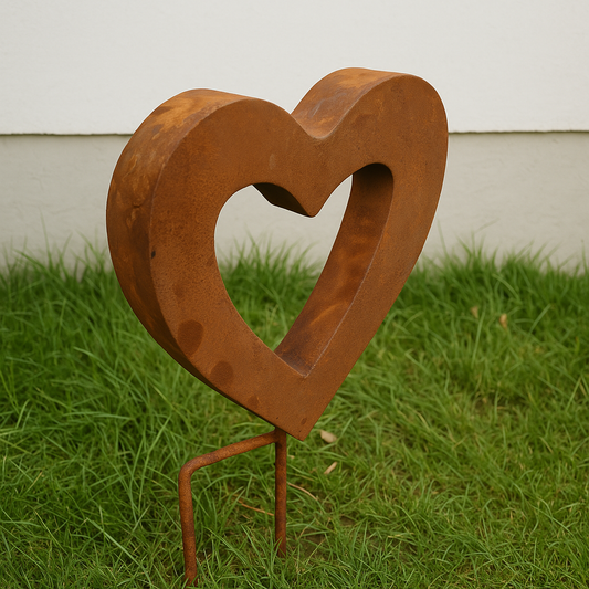 Edelrost Gartenskulptur Gartenstecker "Feuerherz"