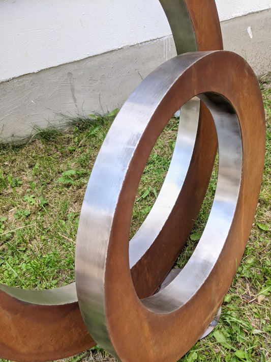 Edelrost GartenStecker Garten Skulptur ,Ring , aus Normal Stahl und Stainless Steel