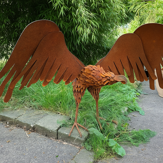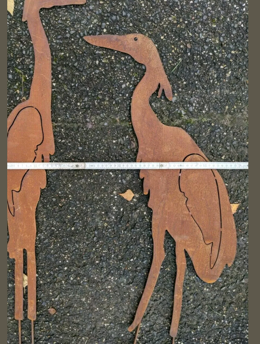 2st. inset Gartenfigure Rost GartenKranich Metall Gartendeko Skulptur 032036,032037