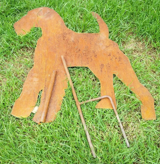 Edelrost Hund Gartendeko Gartenstecker Hund aus Metall 1mm