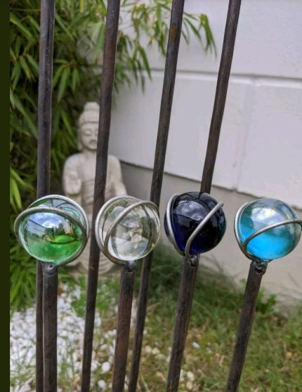 Eleganter Metall-Gartenstecker mit kunstvoller Glaskugel 6cm ,4cm 032215