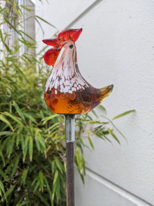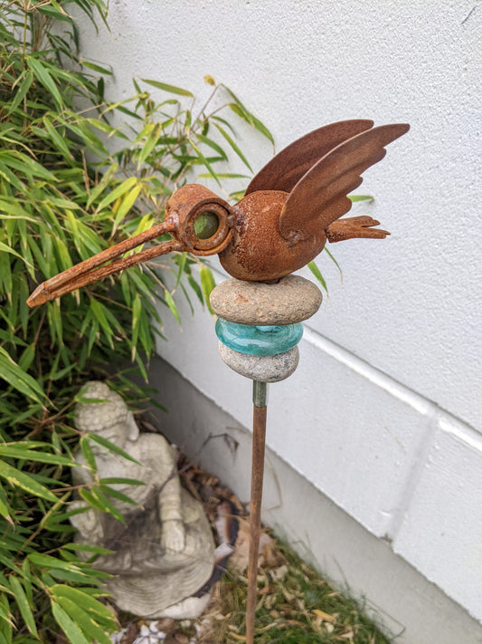 Edelrost Gartenstecker Garten Vogel mit Stein ,Glas