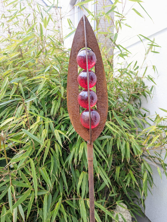 Edelrost Gartenstecker Beetstecker aus Metall mit Glaskugel