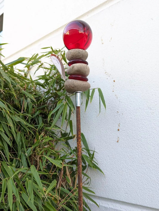 Gartenstecker Rost mit Glaskugel 6cm , Höhe 115cm ,rot , 030962