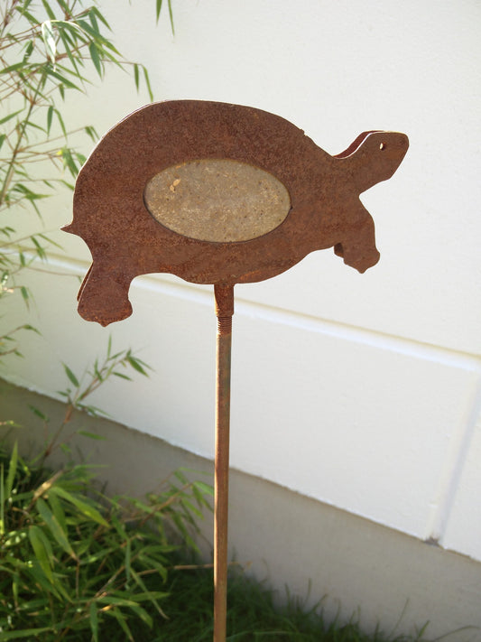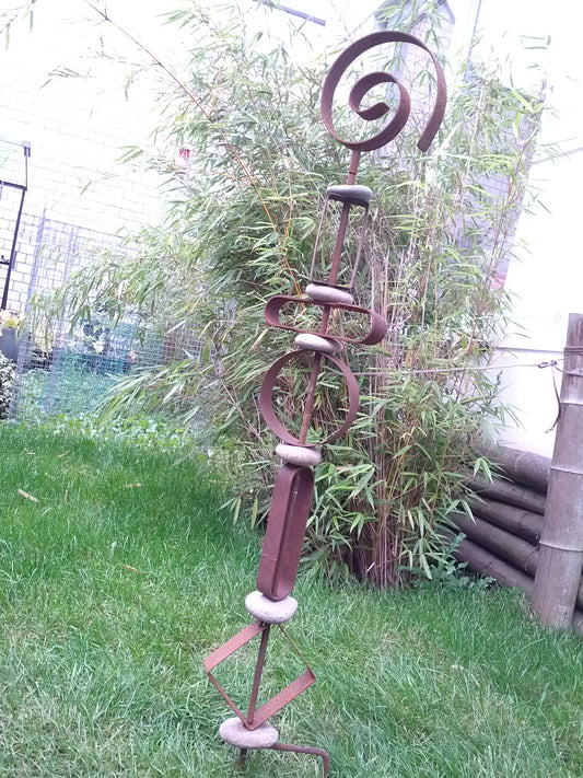 Gartenstecker H100cm ,Rost , Gartendeko, mit Naturstein 029502