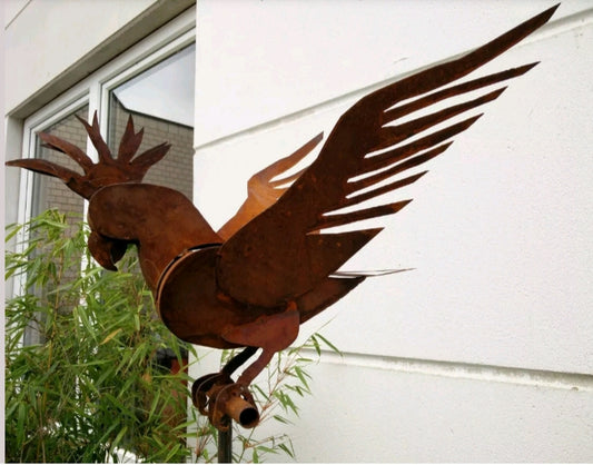 Edelrost Gartenstecker Papagei aus Metall, 031471