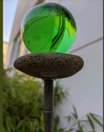 Gartenstecker Rost ,Glaskugel Gruen ,Höhe: 180cm