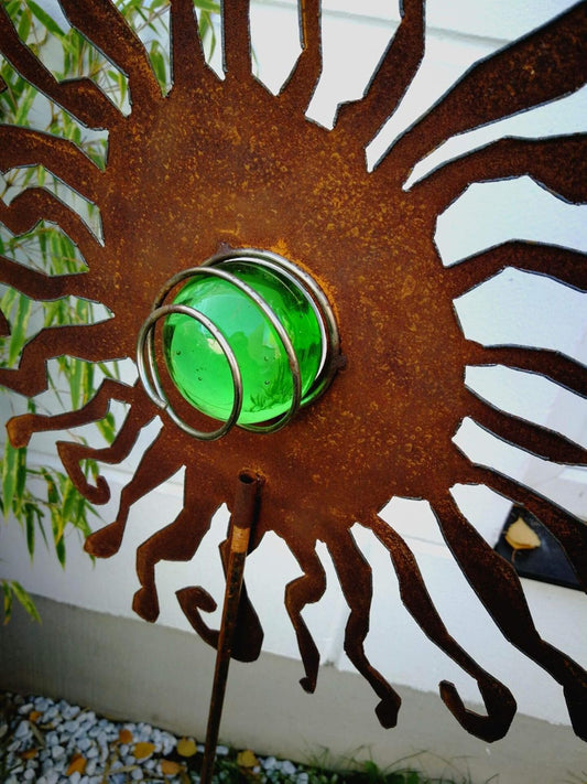 Edelrost Gartenstecker mit Glaskugel 'Sonne ' H125*40cm 031930