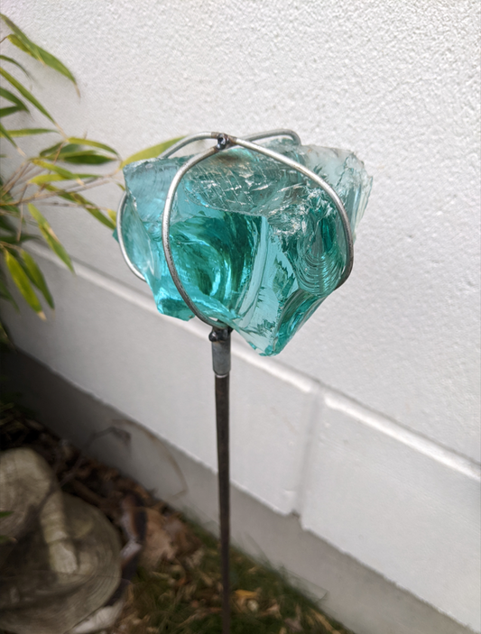 Gartenstecker , Glasdeko , Naturfarbe , hellblau,Höhe 110cm ,031256