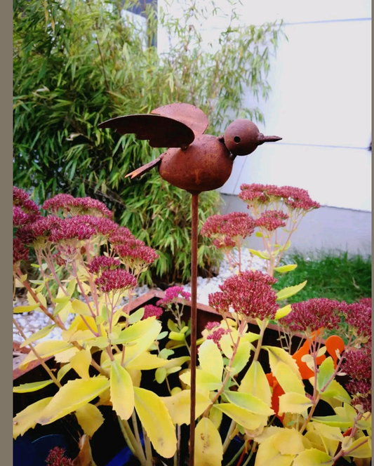Edelrost Gartenstecker ,Gartenvogel 85cm , aus Metall 029491