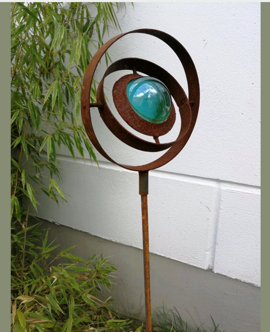 Gartenstecker Rost mit Glaskugel Höhe: 115 cm