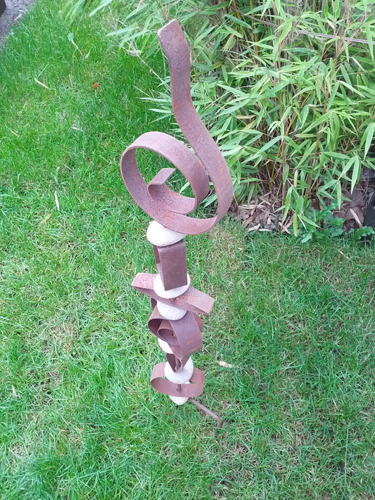 Edelrost Balance Gartenstecker Garten Keramikstecker Höhe 105cm
