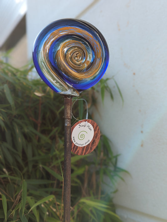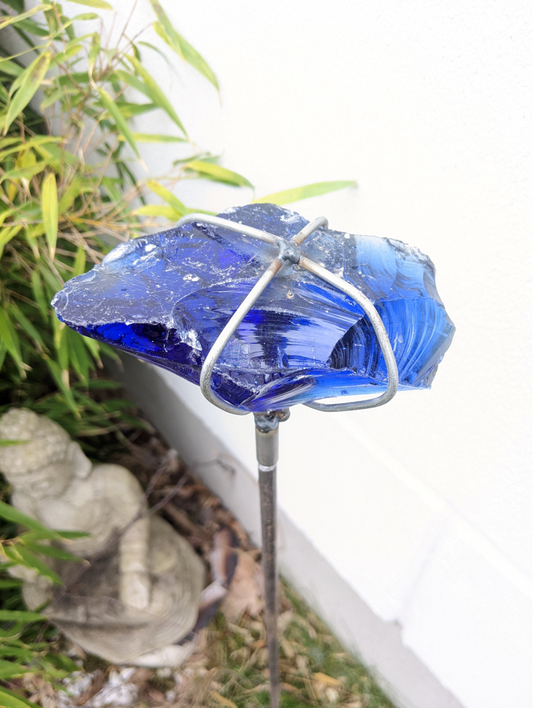 Edelrost Gartenstecker aus Glas und Eisen 032238,Dunkelblau ,Höhe: 149 cm