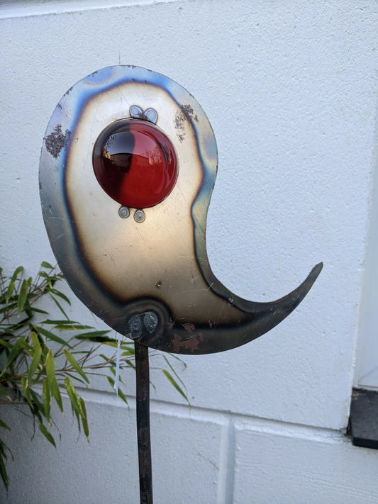Edelrost Gartenstecker aus Metall und Glas ,Stein