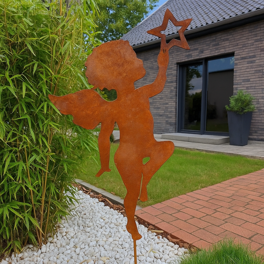 Edelrost Gartenstecker Beetstecker Engel aus Metall 2mm, 031203 ,Höhe 98cm
