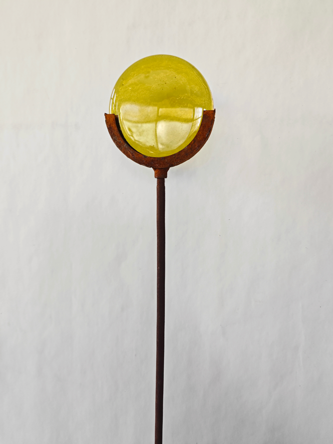 Geef uw tuin een bijzondere uitstraling met deze unieke tuinprikker van metaal en glas. Elk stuk wordt zorgvuldig met de hand gemaakt en is daardoor een onmiskenbaar uniek exemplaar dat uw buitenruimte een persoonlijke sfeer geeft.