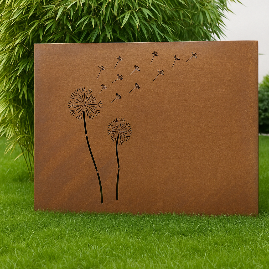 Edelrost Sichtschutzwand aus Metall , Löwenzahn , Pusterblume