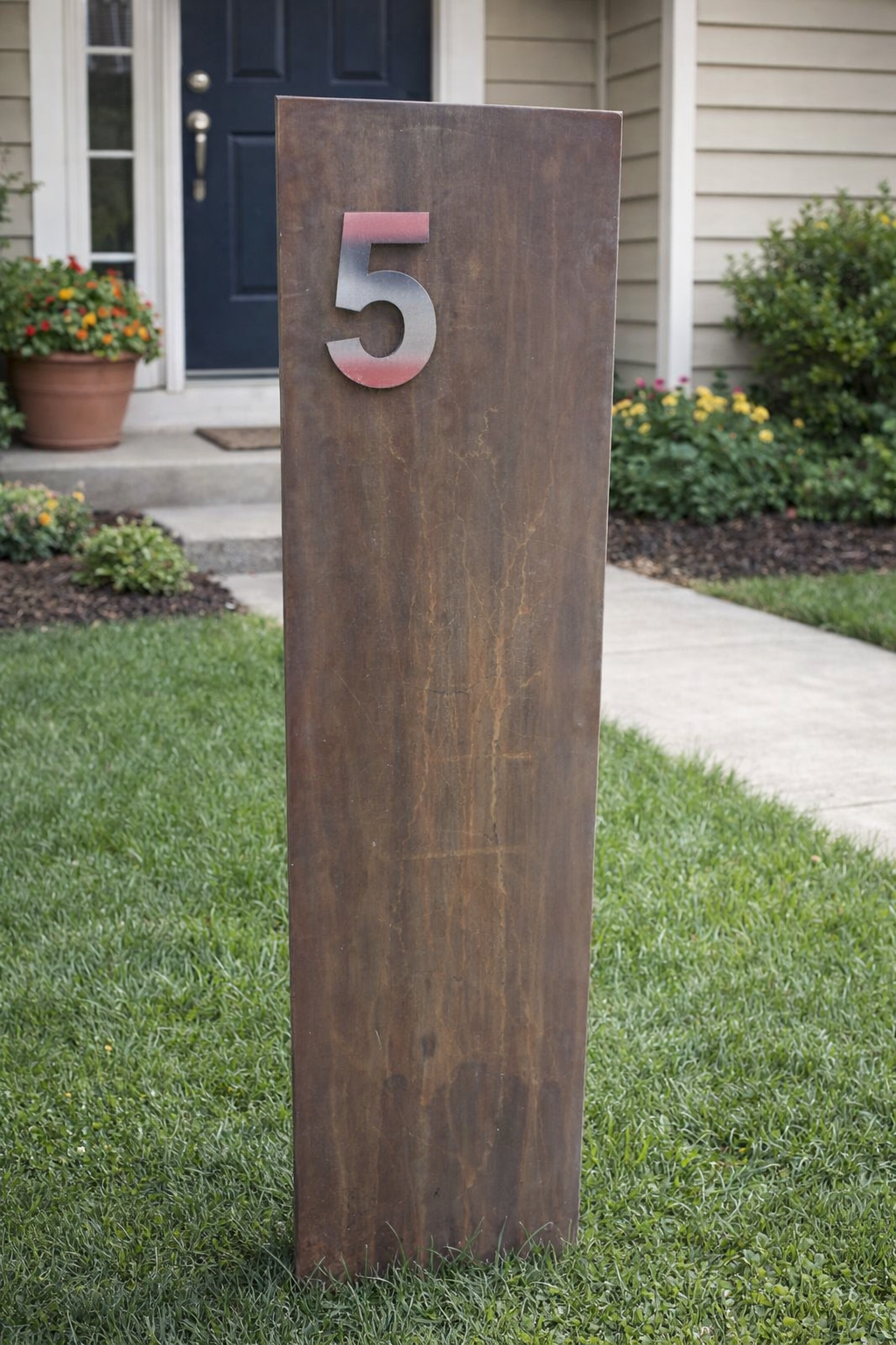 Edelrost 3D Tafel aus Normaler Stahl 1mm , Hausnummer aus Edelstahl