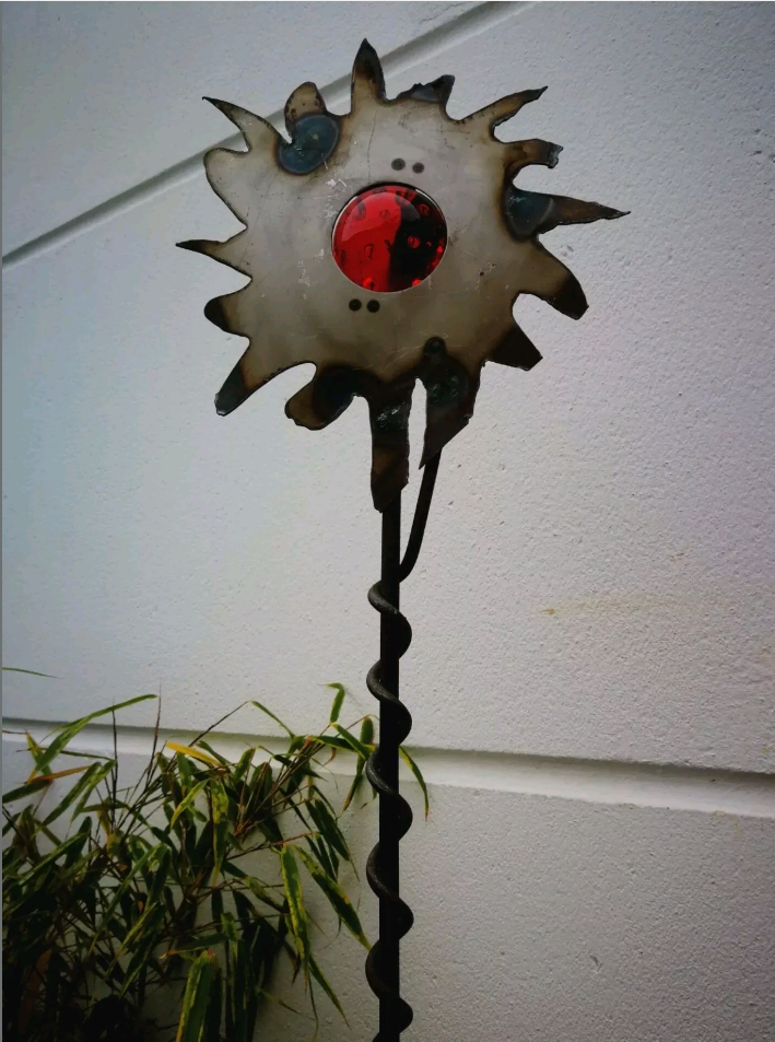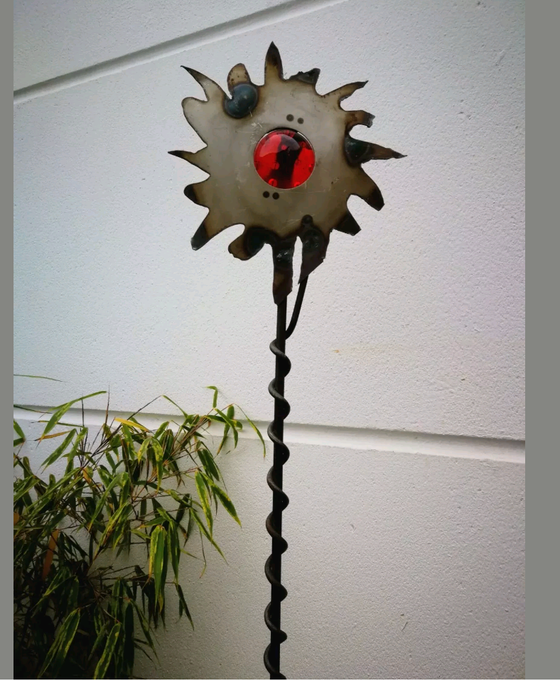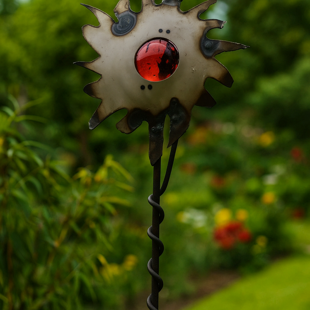 Gartenstecker mit Glaskugel ,Sonne , Höhe: 180 cm , Rot