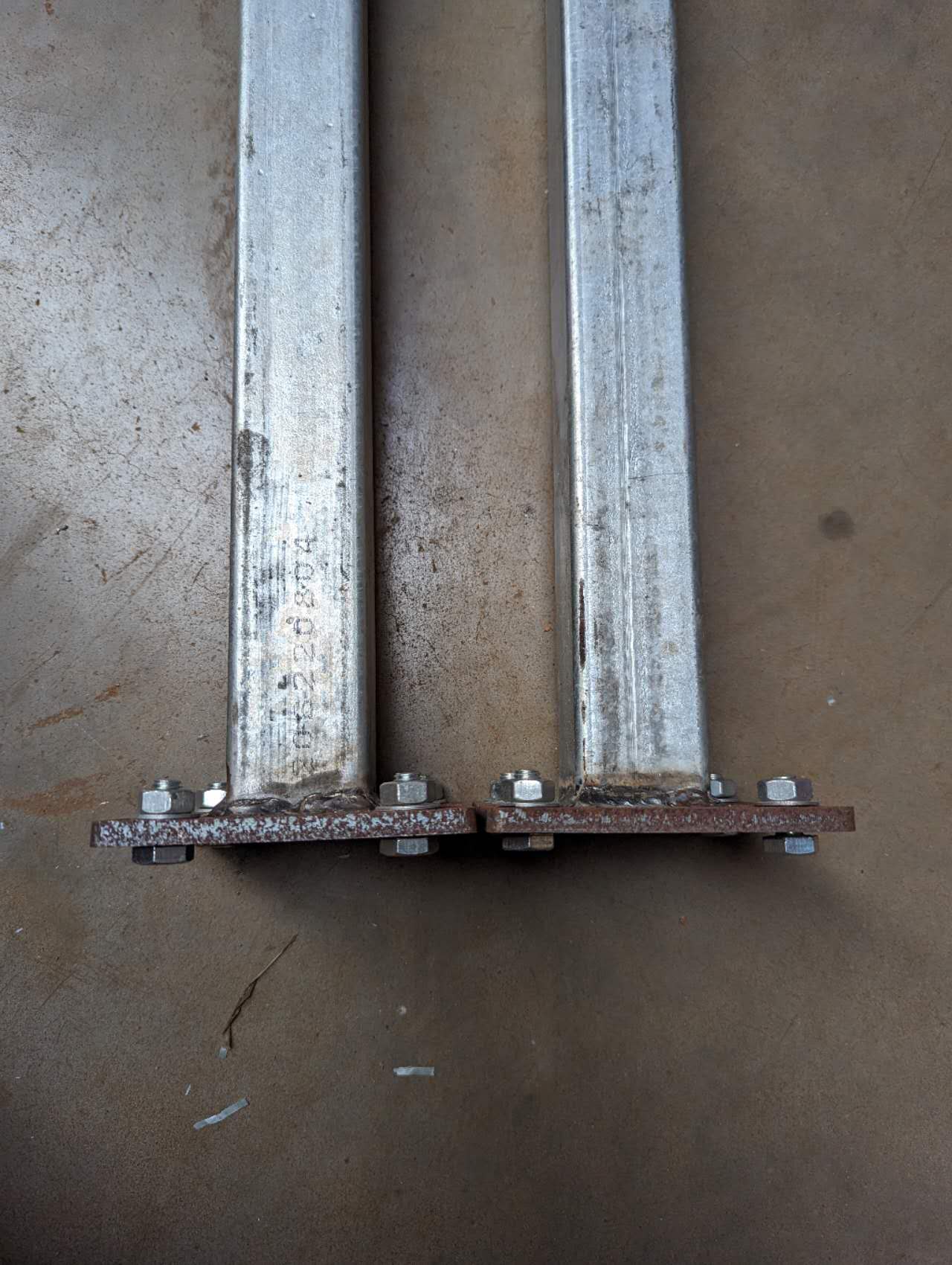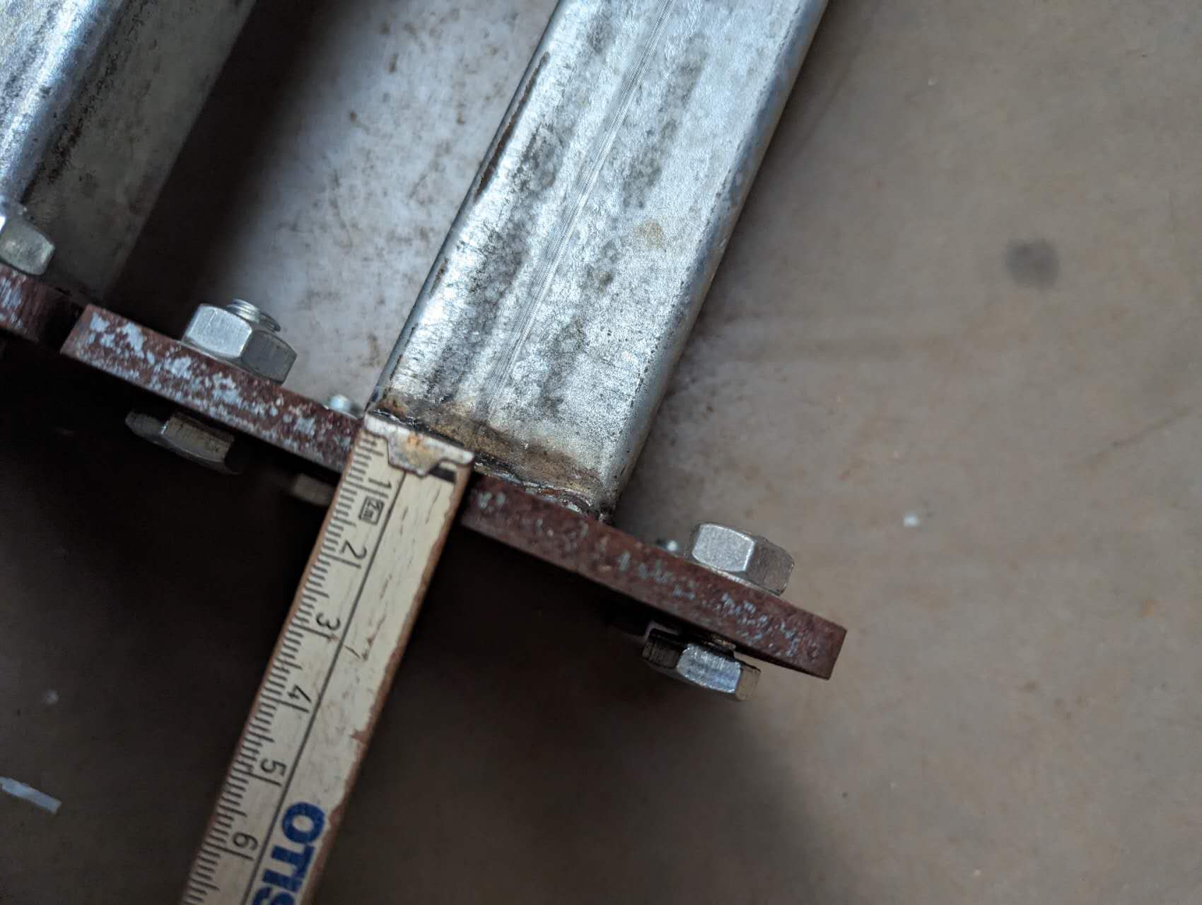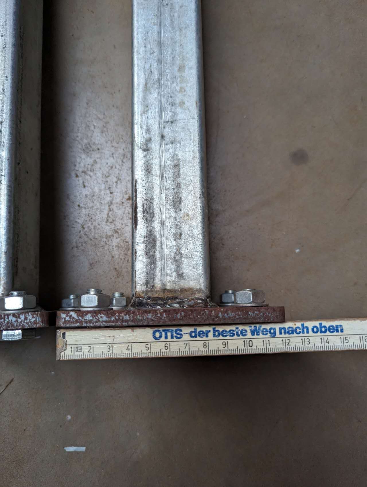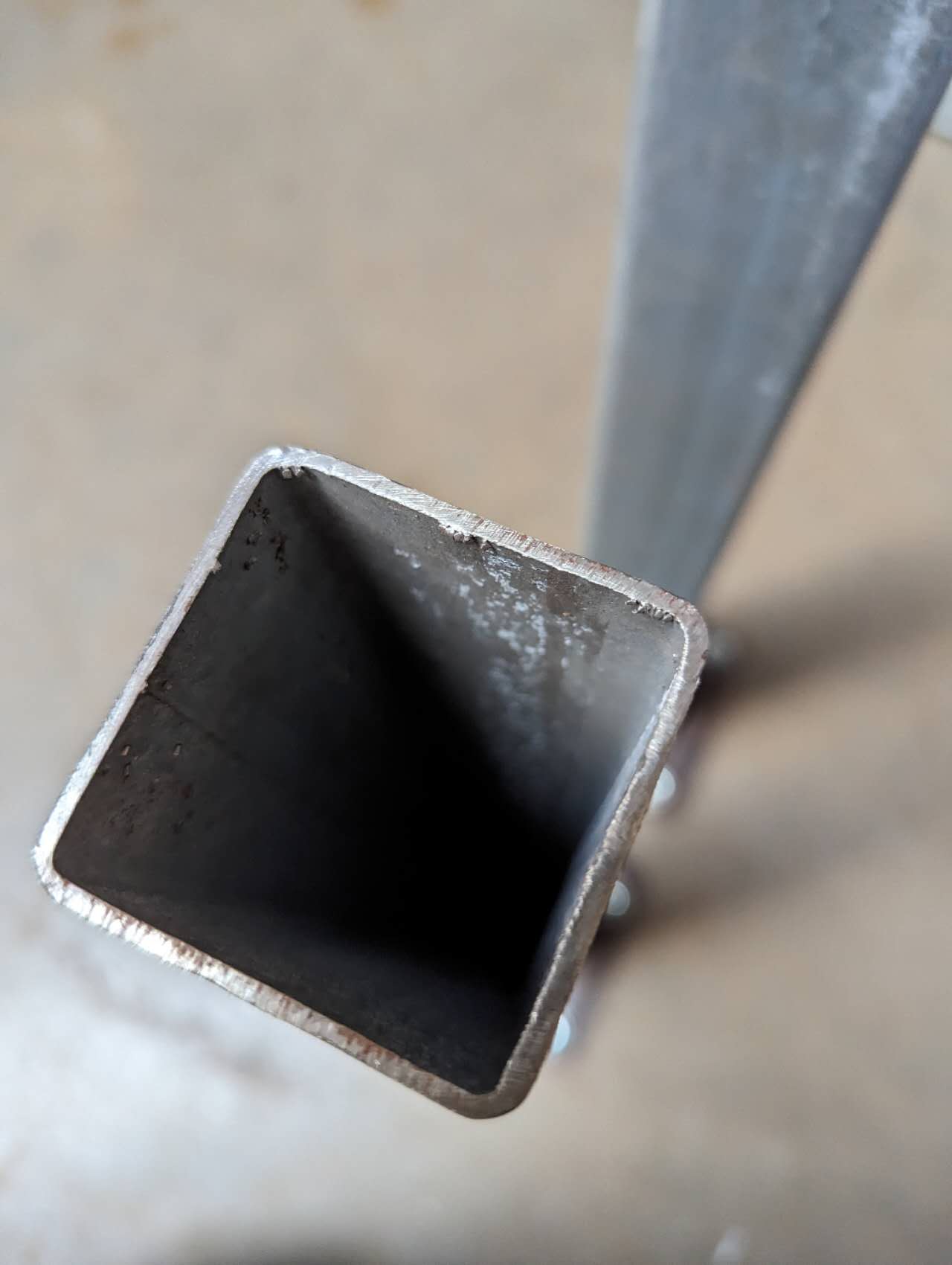 Durchmesser des verzinkten Vierkantrohrs: 4 cm, Dicke: 2 mm