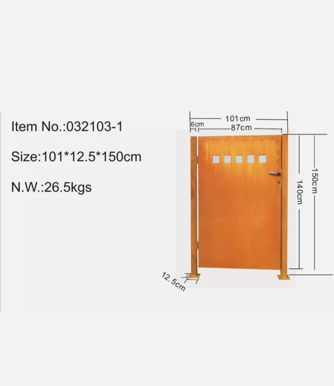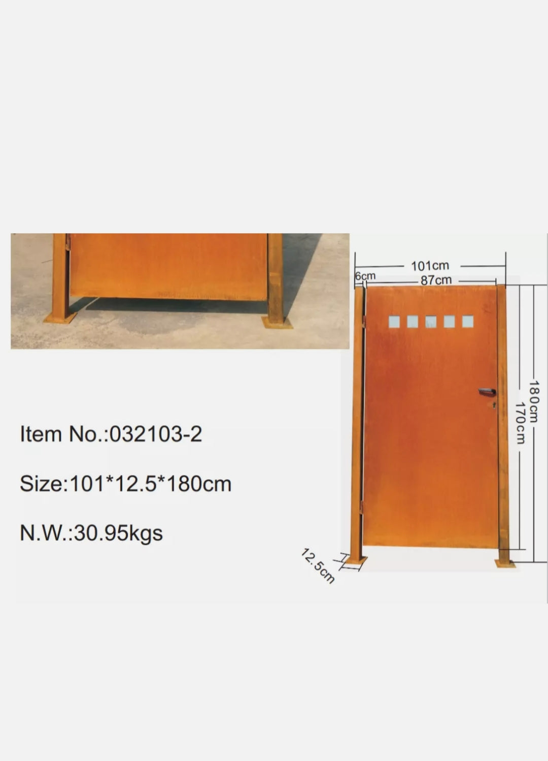 - Gesamtbreite : Tür 87cm + Pfosten 6cm+ Pfosten 6cm = Breit 101cm