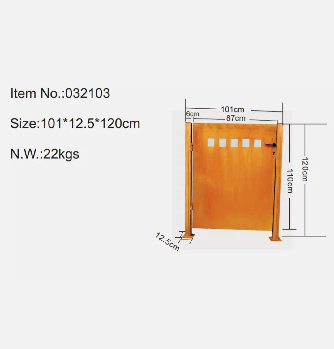 Edelrost Gartentor inkl. Pfosten ,mit Türschloss 032103