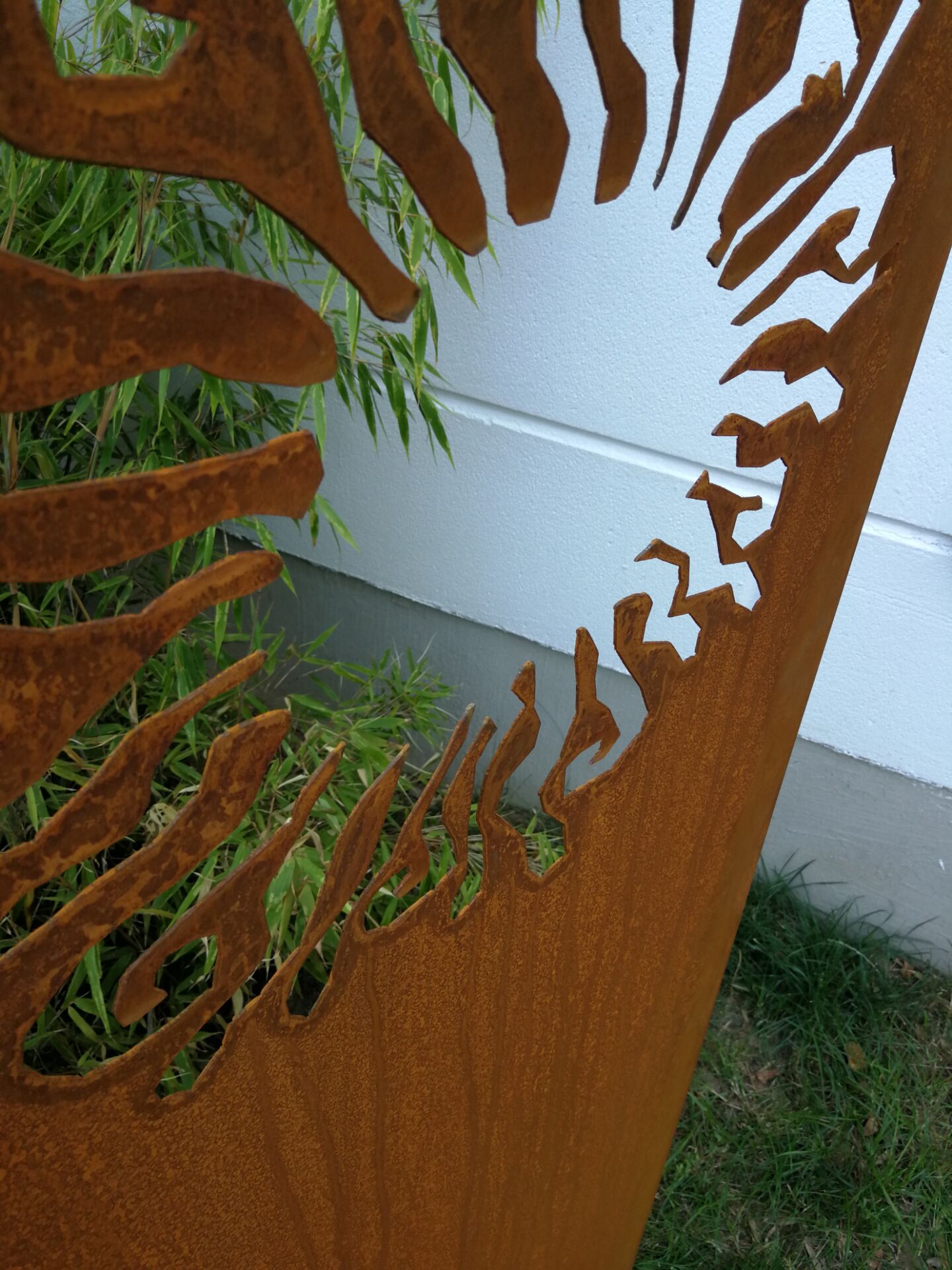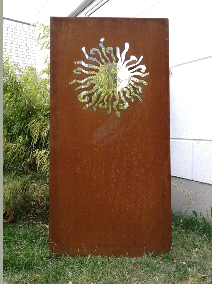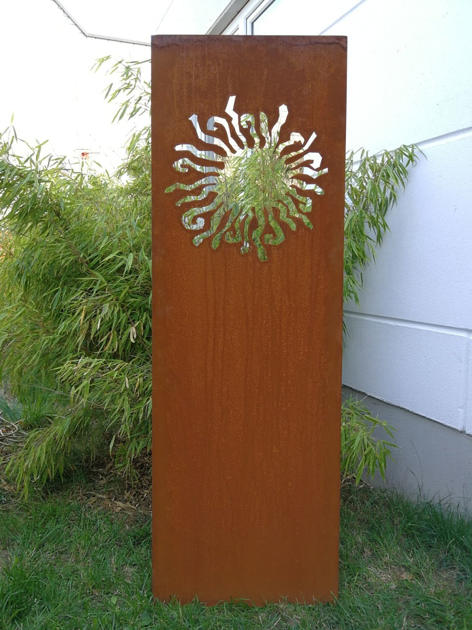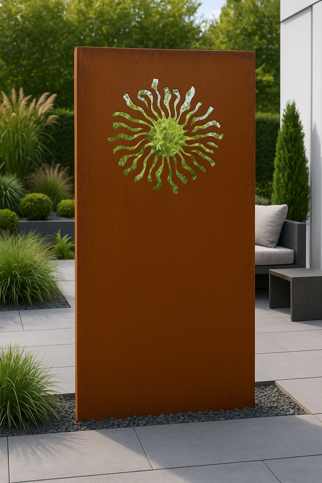 Ein Sonnenmotiv verschönert diese Sichtschutzwand. Eine perfekte Lösung für einen schnellen Sichtschutz.